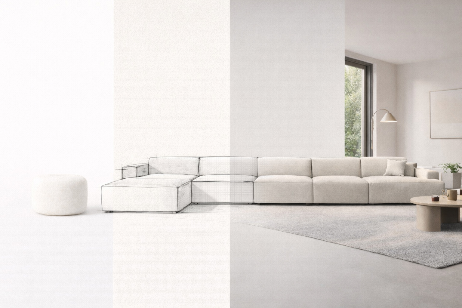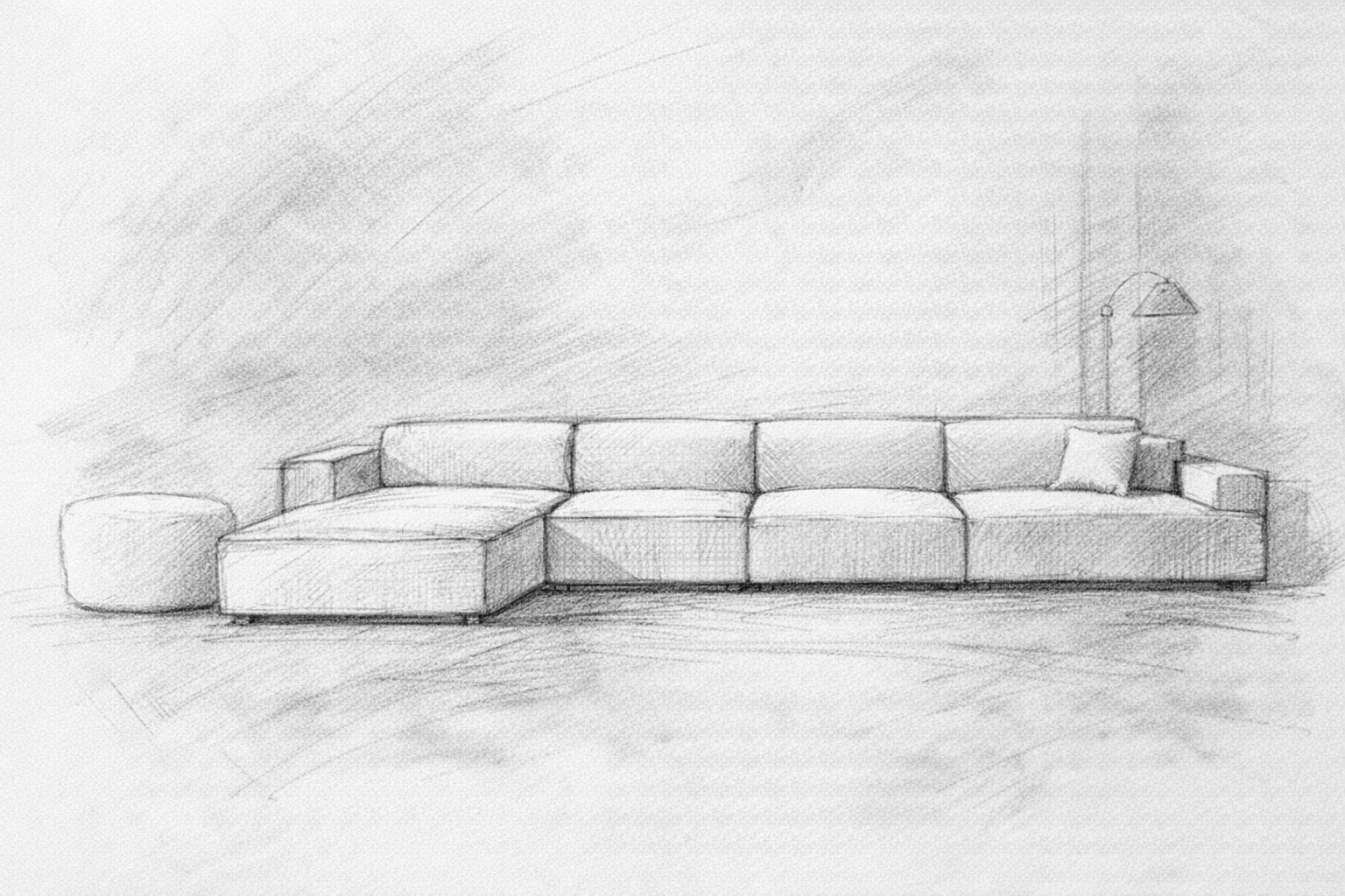Über intensive Zeichenstudien und Modellversuche mit Kartonzuschnitten wurden Proportionen, Volumen und Komfort präzise definiert. So entstand ein zeitloses Sitzmöbel, das Funktion, Ästhetik und Modularität vereint.